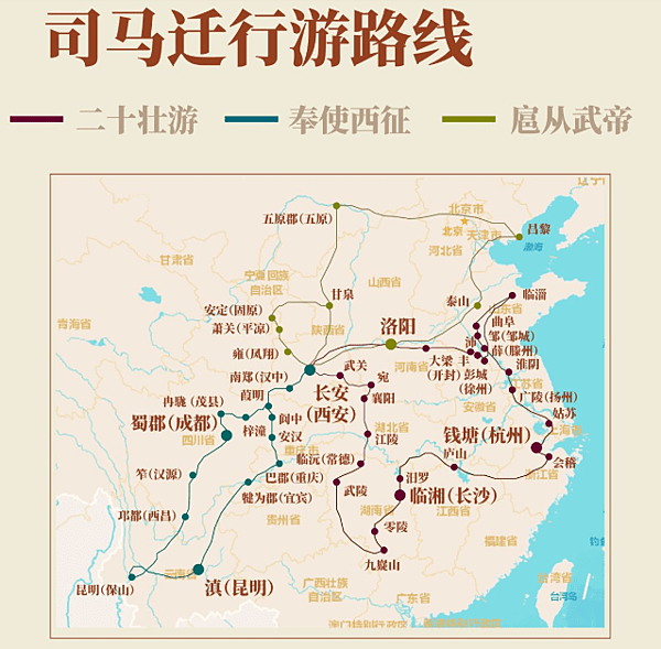 拓直曲曲折折的邊塞,擴展河南之地,攻破祁連山,打開通往西域各國的道路,擊敗北方匈奴。作〈衛將軍驃騎列傳〉第五十一。